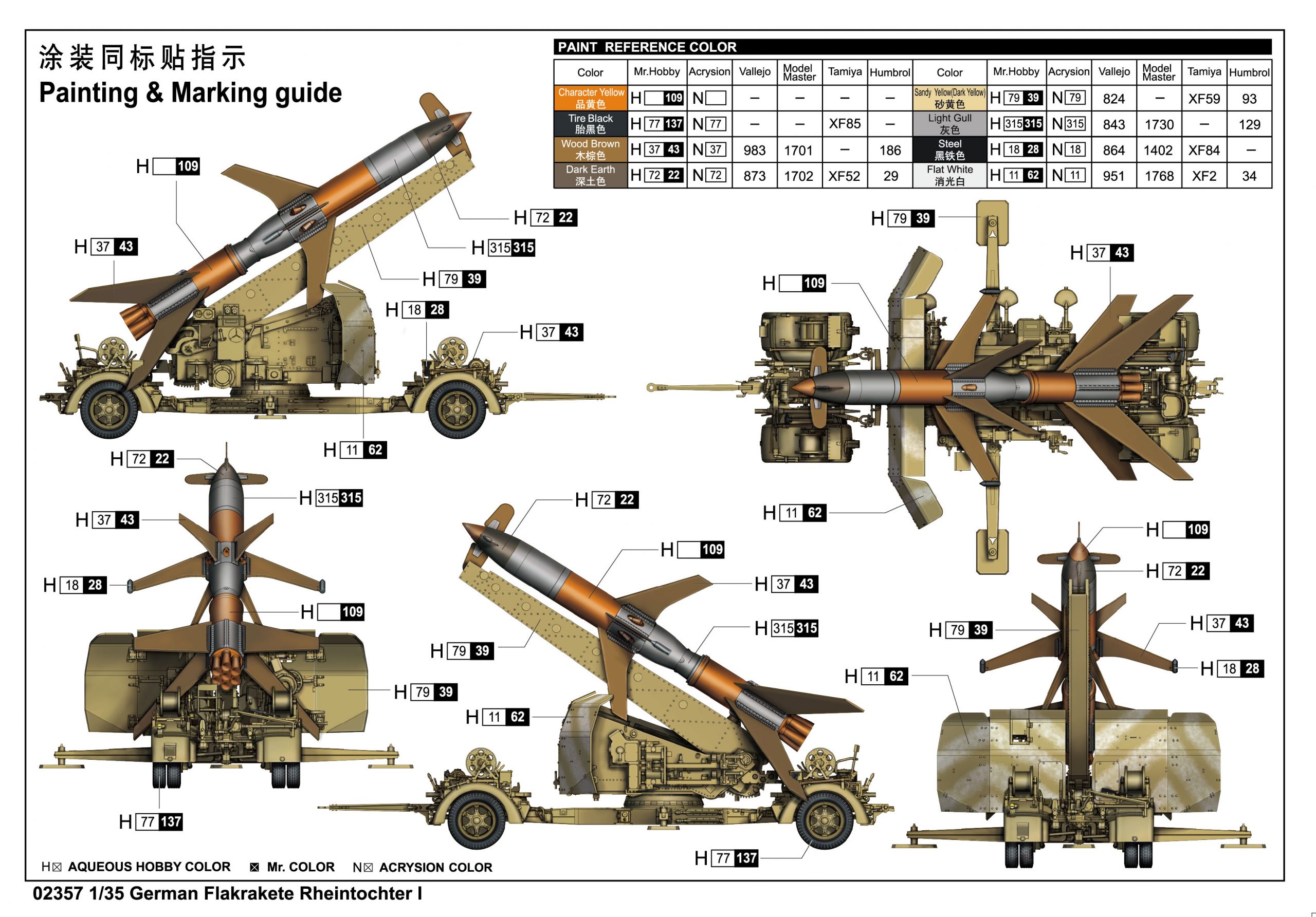 SCATOLA DI MONTAGGIO IN PLASTICA TRUMPETER GERMAN FLAKRAKETE RHEINTOCHTER I SCALA 1/35