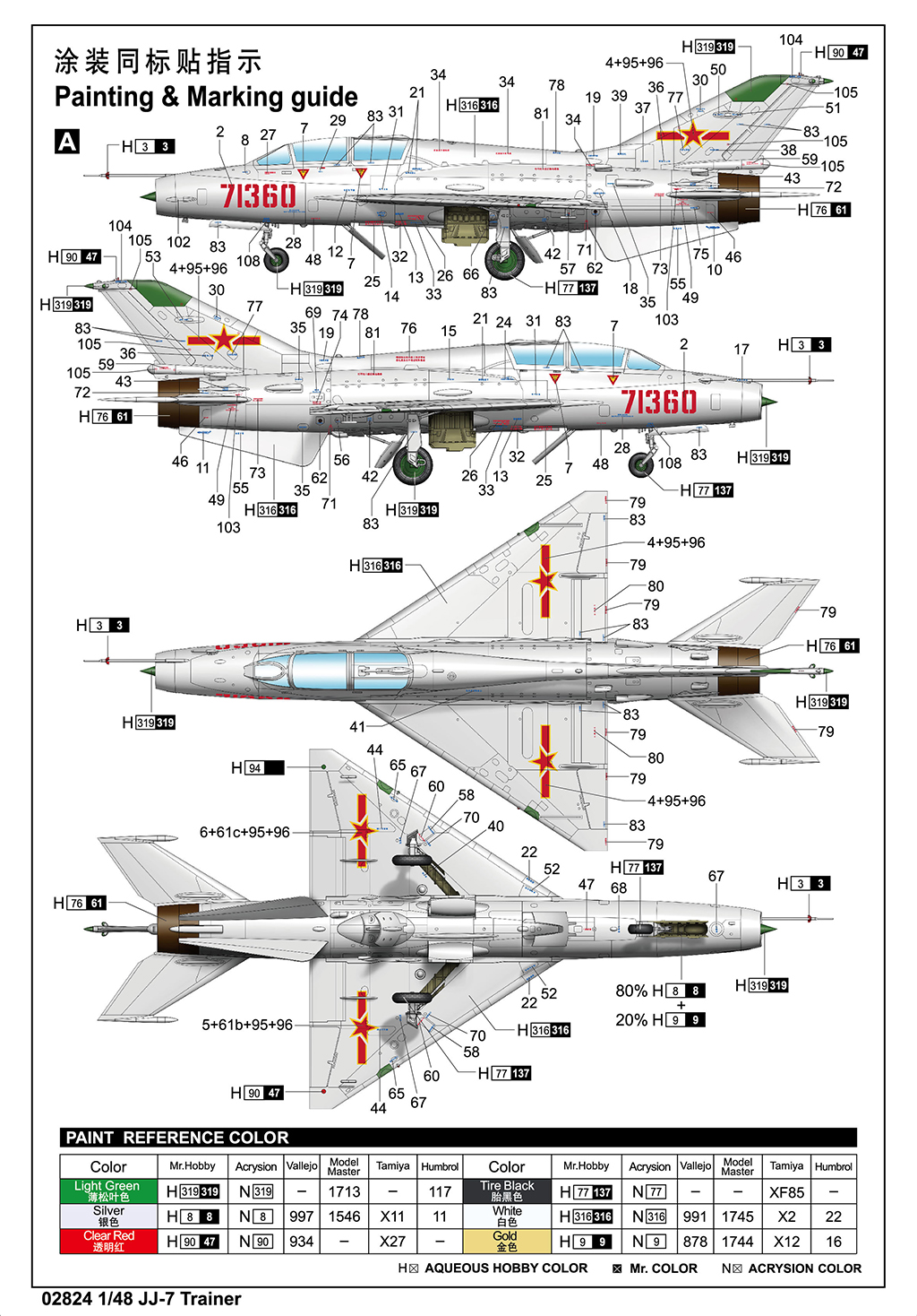 SCATOLA DI MONTAGGIO IN PLASTICA TRUMPETER JJ-7 TRAINER SCALA 1/48