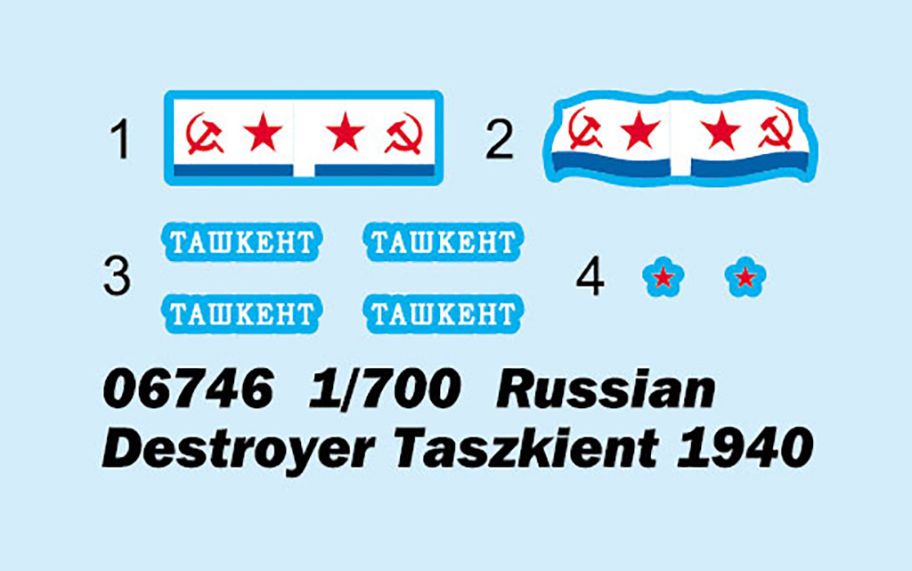 SCATOLA DI MONTAGGIO IN PLASTICA TRUMPETER RUSSIAN DESTROYER TASZKIENT 1940 SCALA 1/700