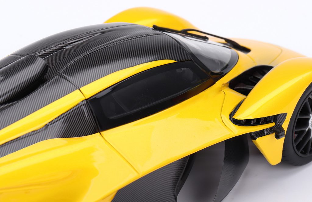 MODELLINO TOP SPEED TSM MODEL MONTATO E VERNICIATO IN RESINA ASTON MARTIN VALKYRIE SUNBURST YELLOW SCALA 1/18