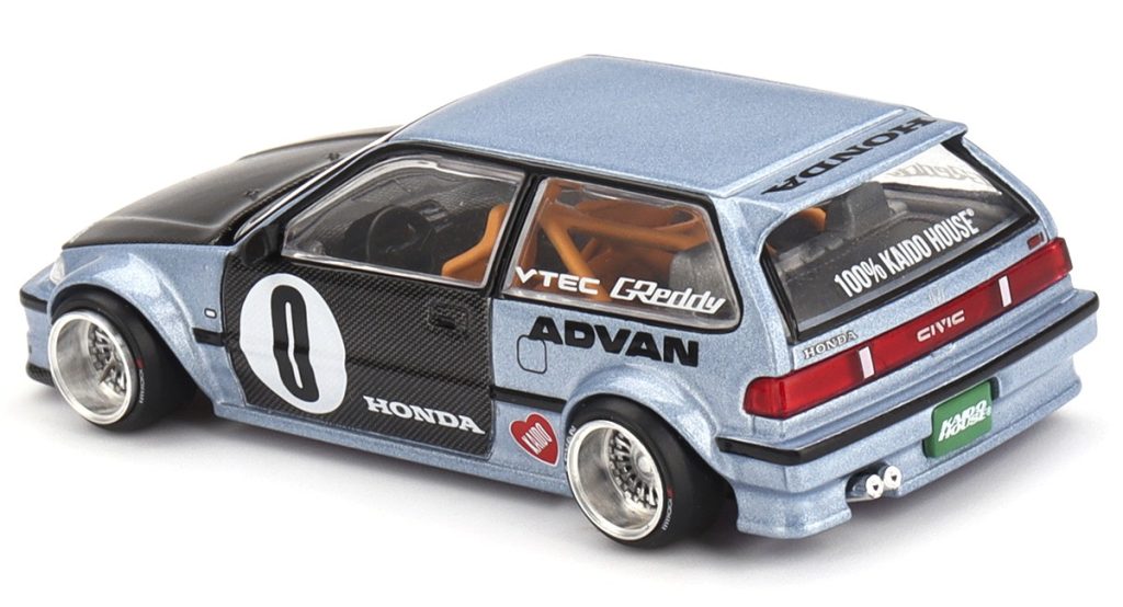 MODELLINO TSM MODEL KAIDO HOUSE MONTATO E VERNICIATO IN METALLO HONDA CIVIC (EF) ROULETTE V1 1987 MINI-GT CON COFANO APRIBILE SCALA 1/64