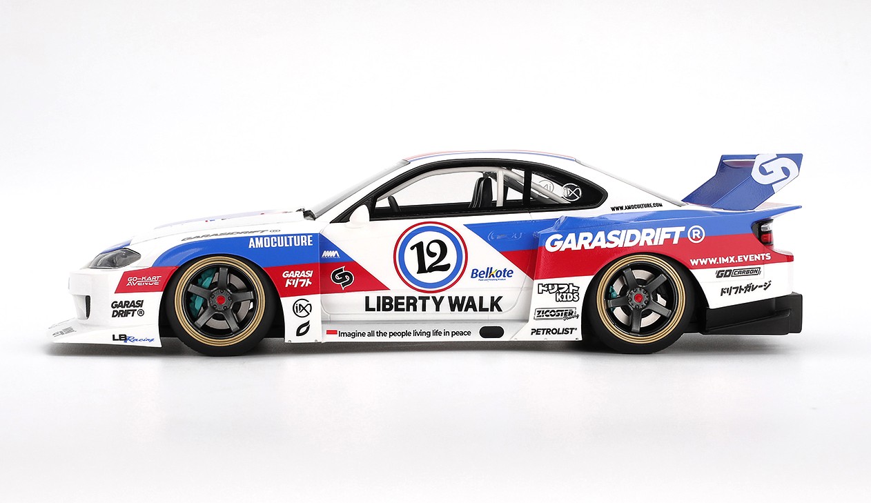 MODELLINO TSM MODEL MONTATO E VERNICIATO IN RESINA NISSAN LB-SUPER SILHOUETTE S15 SILVIA GARASI DRIFT X LBWK 2025 TOP SPEED SCALA 1/18