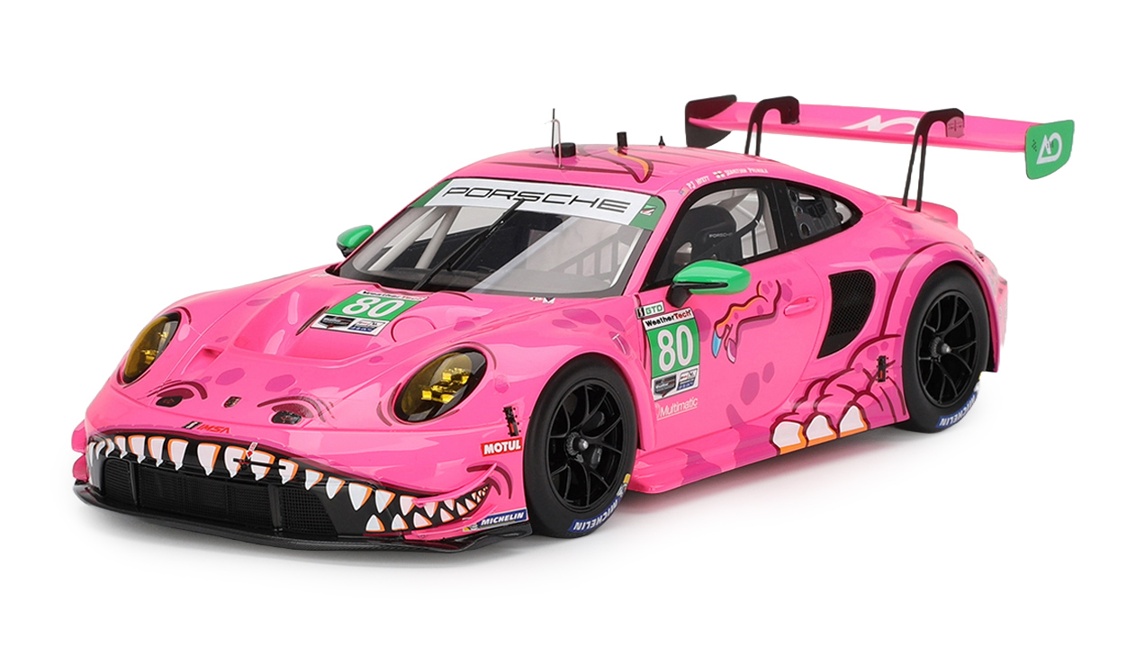 MODELLINO TOP SPEED TSM MODEL MONTATO E VERNICIATO IN RESINA PORSCHE 911 GT3 R #80 AO RACING IMSA MICHELIN GT CHALLENGE AT VIR 2023 SCALA 1/18