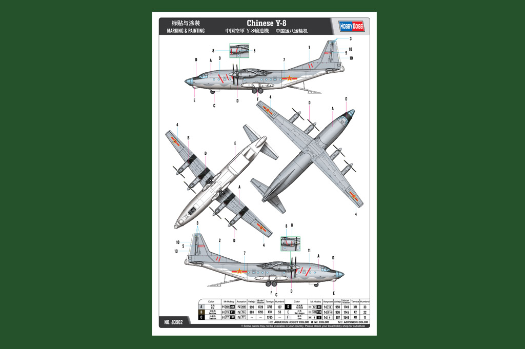 scatola di montaggio in plastica hobby boss Y-8 scala 1/144